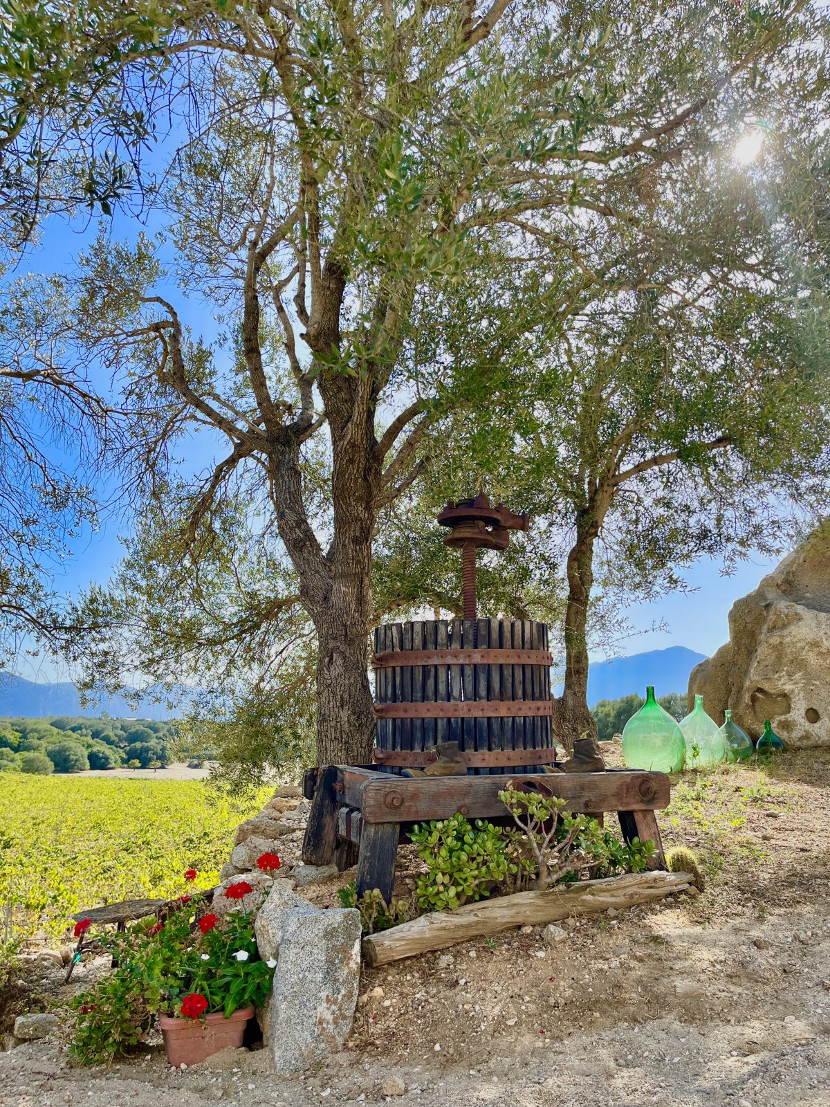 After lunch we set out for a winery Ton had found on line. When we arrived at the winery after a lovely drive through the Sardinian countryside we missed the turn into the tasting area, and came across a worker cleaning winery equipment. He flagged us down pointed us in the right direction, and then met us at the door to pour us wine.