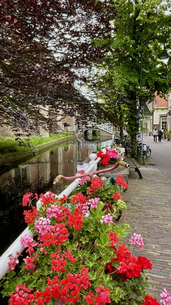 After lunch Ton was ready for a break so we walked into Delft. Delft is a lovely town, and could not be more Dutch. Clean sturdy looking homes, canals everywhere and lots of bikes. It is a nice city to walk in and has thoroughly charmed all of English neighbors in the campground as well as us.