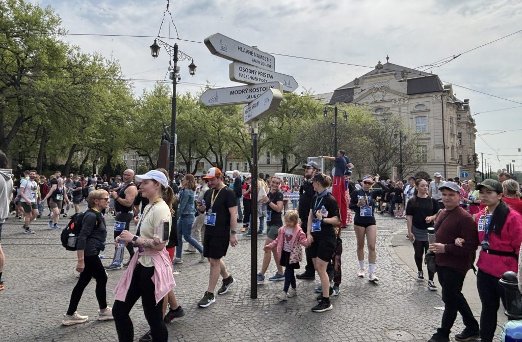 We had to sort out the logistics of getting into town as today was the National Devin Run which is a big deal in Slovakia. The race starts at a castle about 12 kilometers outside of town and ends in the center of Bratislava. We could tell that the tram route was shortened to accommodate the run but couldn’t tell by how much. The young lady at the front desk determined that the tram ran to the center of the city so we were good to go.