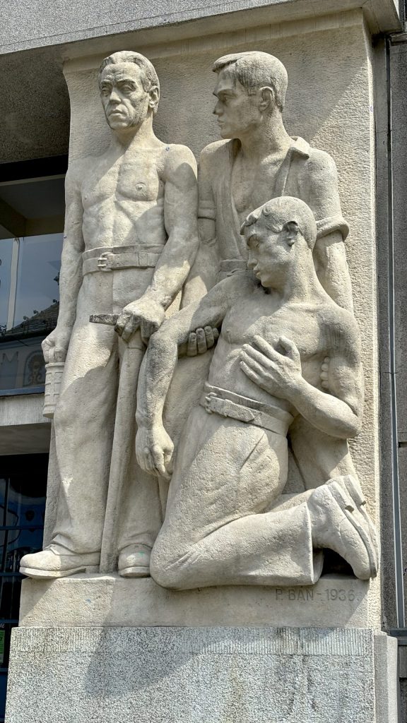 We needed a purpose for the day so walking to the tram we decided to seek out a street sculpture called the sewer worker. It is a cute sculpture showing a guy climbing out of a sewer hole. Ton also had discovered a restaurant that she was interested in trying the food and seeing the building. So with a purpose in mind we struck out into Bratislava.