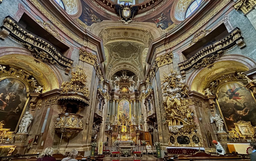 On one of the streets we came across St. Peters Church and popped inside to check it out. It was ornate and beautiful. Ton really liked it and spent 30 minutes exploring. I spent a lot of that time sitting in a chair and taking in the place, it is built to overwhelm the senses and it succeeds. It also features concerts in the evening, and it looks like it would be a great place to take in some of the music that Vienna is famous for.