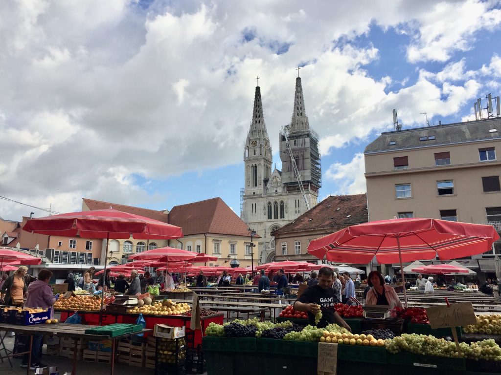 The campground we are staying at is in a suburb of Zagreb about 11km’s from the city center. They run a free shuttle bus to the local train station, and from there it is about 15 minutes to the center. We were the only couple on the first shuttle of the day, and when we got to the station we were waiting in line to buy our tickets when a train pulled into the station. The Croatian ticket seller then yelled something in Croatian at a young lady in line and us. The young lady understood and bolted after the train, Ton and I looked confused so she said something else and pointed at the train, so we retreated to the platform, just to make sure we understood she came out of her office and gave us the hand signal to hurry up and pointed at the train. So we ran after the train and got on. At that point I went up to the young Croatian lady who was in line with us and asked if she spoke English, she did, fluently. She explained that the ticket seller was telling us to get on the train and pay there. I asked who we should pay, and she said that someone might come along to collect, and if they don’t the ride is free this morning. The ride turned out to be free.