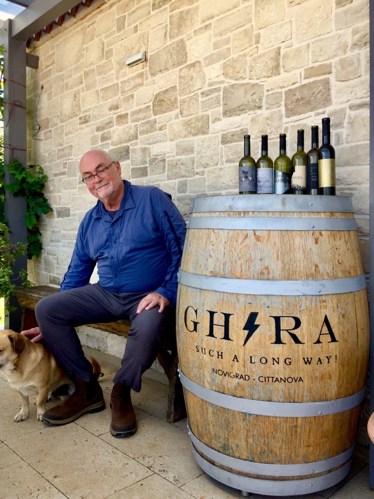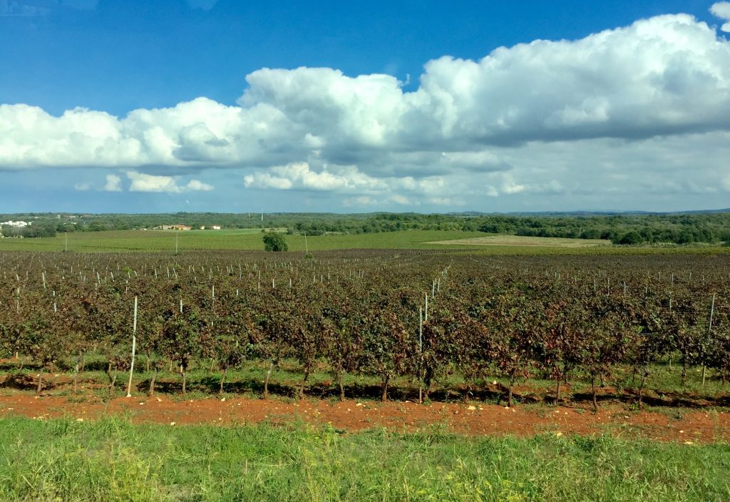 We finished with Vrsar and headed for Umag which was close to the Slovenian border. We followed a winding seaside highway for the 40km’s to Umag. About 7% of the population of Istria is Italian so the town names were listed in both Croatian and Italian. Near the town of Novigrad (Cittanova in Italian) Ton spotted a sign for a winery so we turned in. The wide road turned into a one lane track and just as I was about to turn around we found the winery.