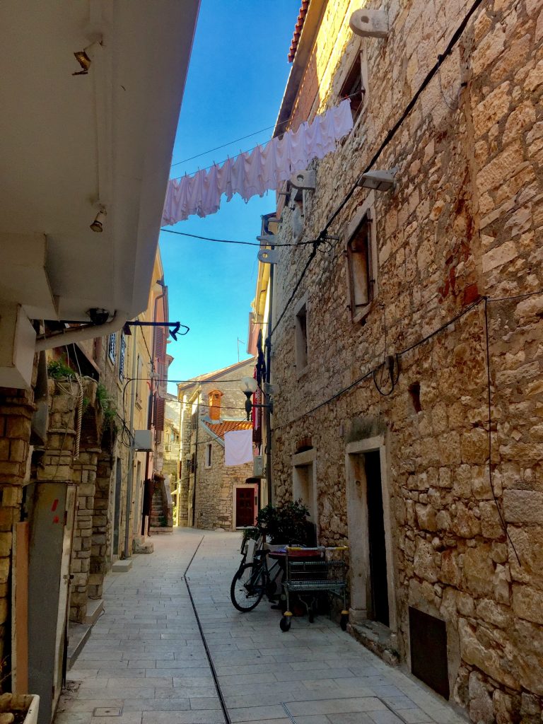 A street scene from the old town in Umag, which is about 3 alleys near the water. The rest of the town was communist era concrete blocks.