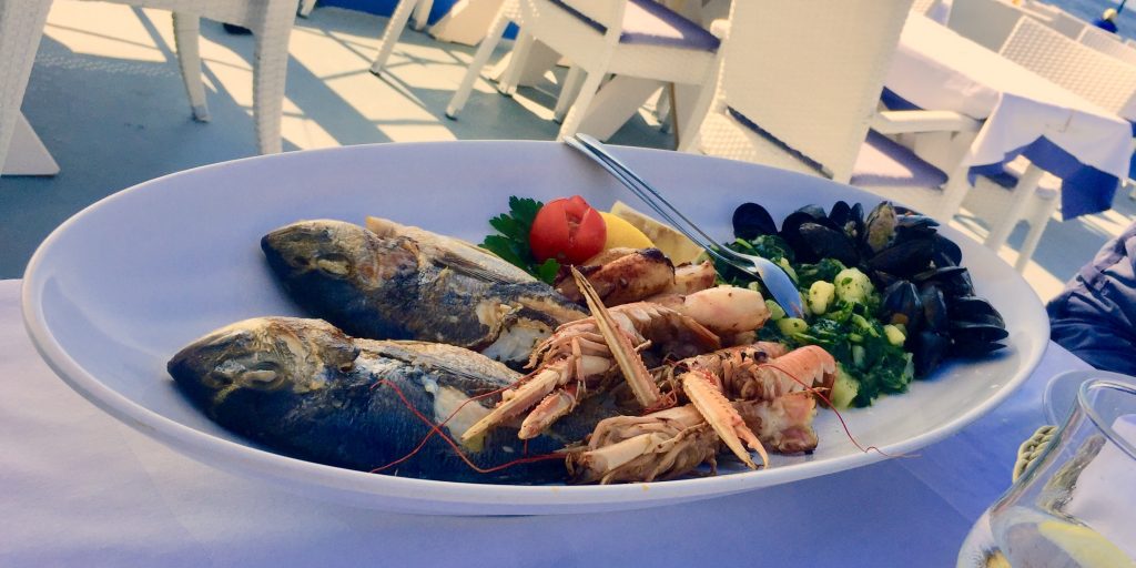 Once we got off of politics, our server took Ton inside the restaurant to survey the fish on offer. When she returned we ordered the Umag platter which consisted of two fish, octopus, shrimp, and mussels. It was wonderful and served for two meals as neither of us was hungry for dinner when we returned to the campground.