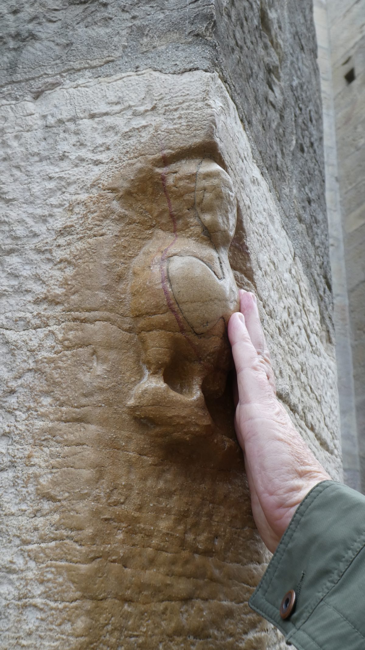 The lucky owl on the side of the Church of Notre Dame.  Notice how worn it is from all of the people looking for good luck.